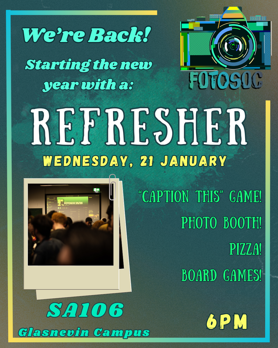 Join Fotosoc for our first event of 2026! We will be holding a fun "Caption This!" game, involving coming up with funny captions for photos from our previous Fotocrawl!