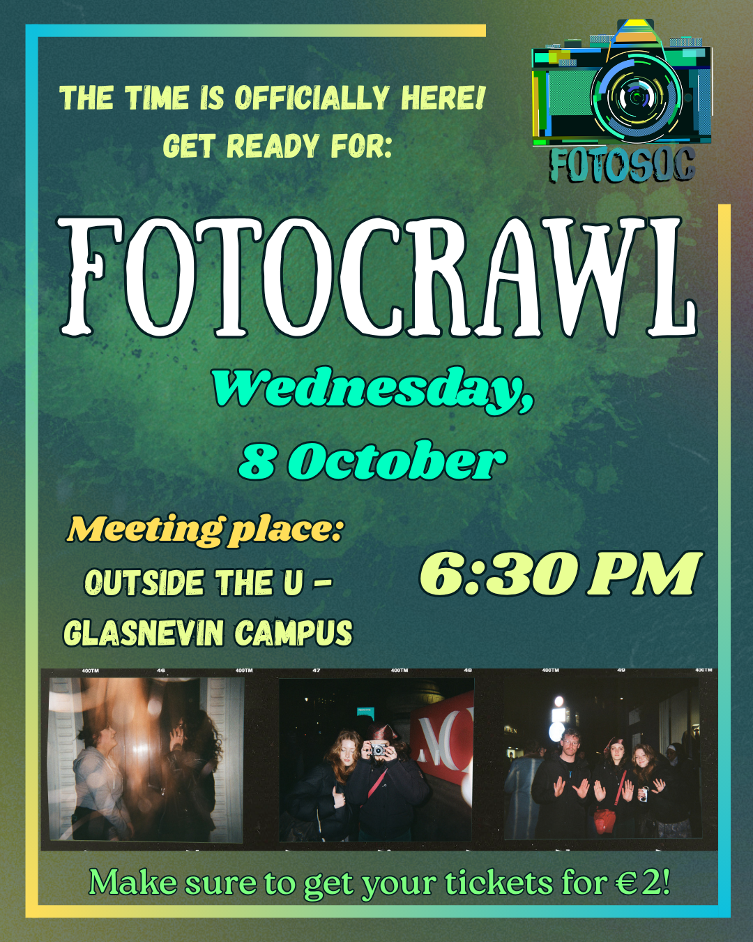 Everyone is welcome at fotosoc, no matter what experience you have had with photography. Joining fotosoc is the perfect way to get involved with DCU society life, make life-long friends and pick up a new skill along the way. So, what are you waiting for? Join fotosoc today!