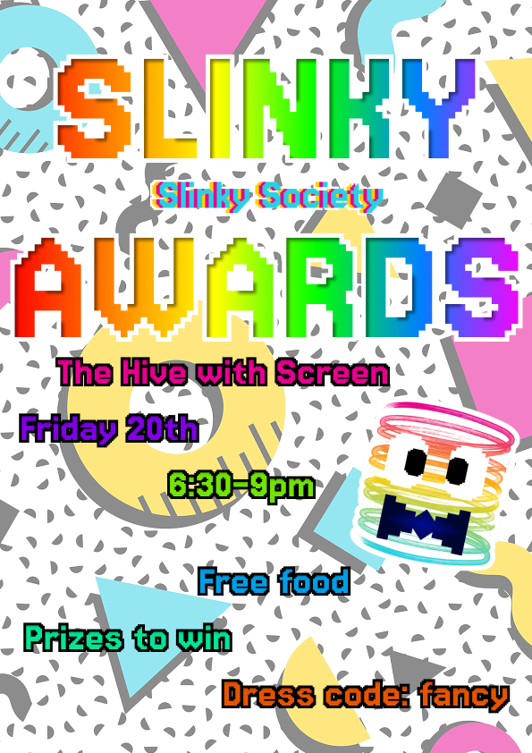 For one night only, we at slinky society want to throw our slinkies around and have some fun while we shine a light on the accomplishments of our lovely members and committee! With food and prizes to be won, come dressed to the nines for our SLINKY AWARDS